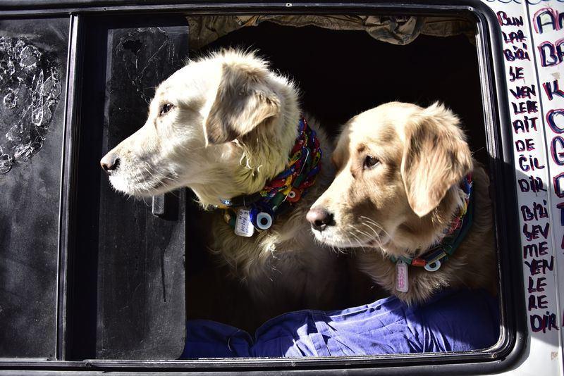 Eve dönüştürdüğü minibüste köpekleriyle yaşıyor