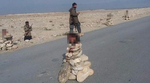 IŞİD militanları öldürdükleri savaşçıların kafalarını yol kenarında ve üzerinde taşların üstüne koyarak sergiledi.