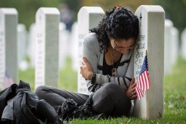 Thania Sayne isimli Amerikalı kadın, 16 Ekim’deki evlilik yıl dönümlerinin öncesinde eşinin mezarının başında ağlıyor. - 2013