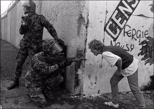 İrlandalı genç, Kuzey İrlanda’daki İngiliz askerlerine meydan okuyor.