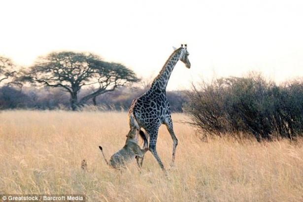 Bu defa bir aslan sürüsü bir zürafayı gözüne kestiriyor.
