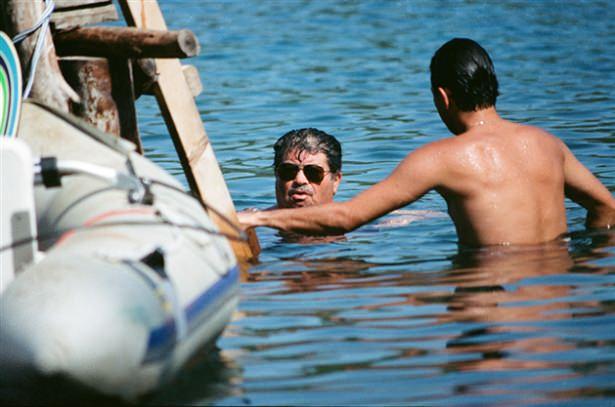 Cumhurbaşkanı Özal, 4 Ağustos 1992'de Muğla'nın Marmaris ilçesinde denizde yüzerken görülüyor.
