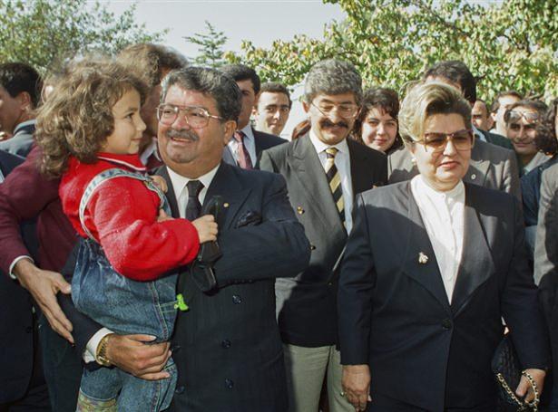 Başbakan Özal eşi Semra Özal ile İzmir'de 20 Ekim 1991'de katıldığı bir programda kız çocuğunu severken görülüyor.