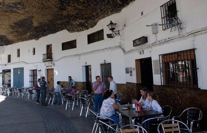 Güney İspanya’daki Setenil de Las Bodegas adlı pueblo (küçük kasaba) tam olarak bir yeraltı şehri değildir, sadece dışa doğru çıkıntı yapan devasa bir kayanın altında yer alır. Rio Trejo nehri tarafından aşındırılmış dar bir kanyon boyunca uzanan evler, kanyon duvarlarının içine ve altına doğru inşa edildi.