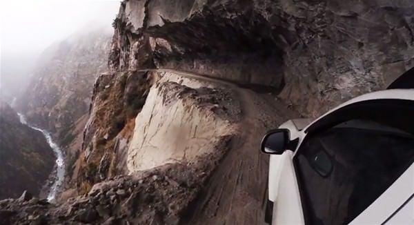 Yolun bir kenarı 6400 metrelik uçuruma açılıyor.