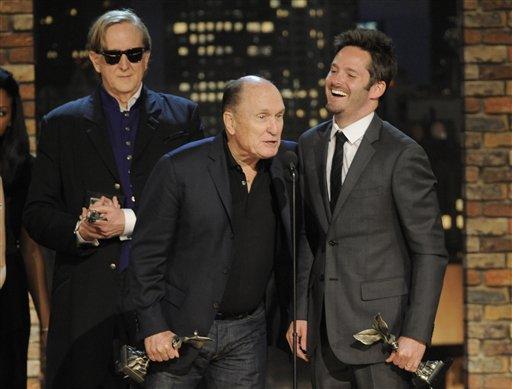 Bone Burnett (solda) Robert Duvall and Director Scott Cooper En İyi İlk Film ödülünün sevincini yaşayan ekibin içinde