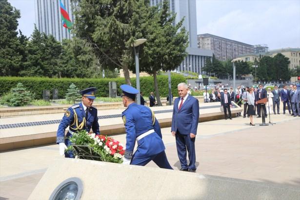 Başbakan Binali Yıldırım, resmi temaslarda bulunmak için geldiği Azerbaycan'da, merhum Cumhurbaşkanı Haydar Aliyev'in mezarını ve şehitlikleri ziyaret etti. Yıldırım, Bakü Türk Şehitliğini ziyaret ederek buradaki anıta çelenk sundu, temsili şehit mezarlarına karanfil bıraktı.