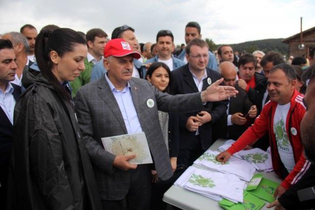 Başbakan Binali Yıldırım yağmurun altında doğa yürüyüşünde