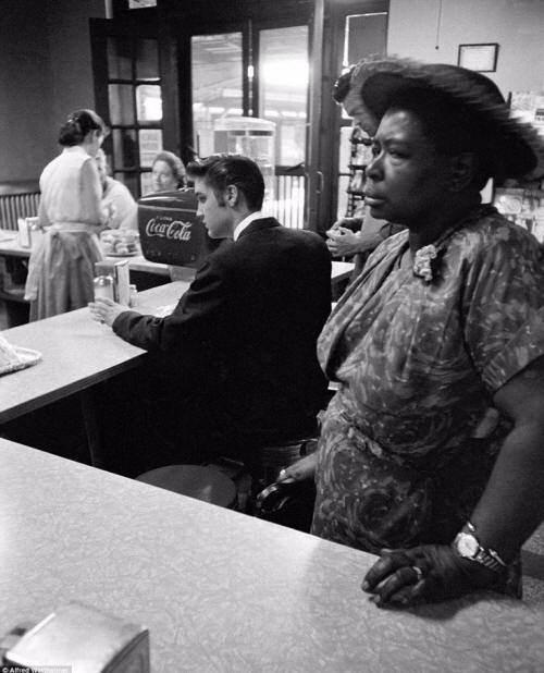Bir kadın ayrımcılık nedeniyle beklemek zorunda iken, Elvis Presley bacon ve yumurtasını beklerken, 1965