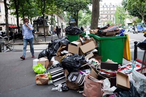 Paris'te çöp gövdeyi götürüyor