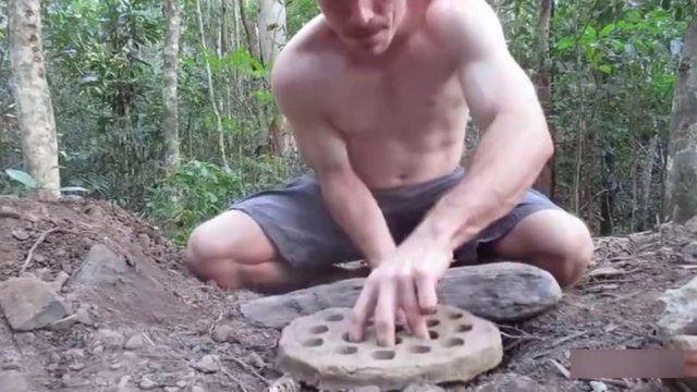 Çamurdan yapmış olduğu tuğla kadar sert ocak başını yerine yerleştiriyor...