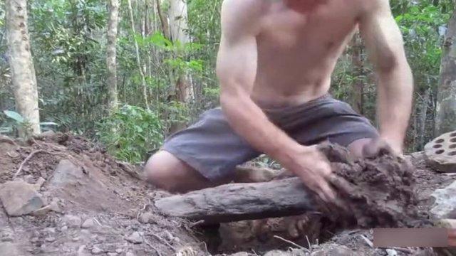 Yaptığı çamurla ocağın etrafını hava almayacak şekilde kapatıyor...