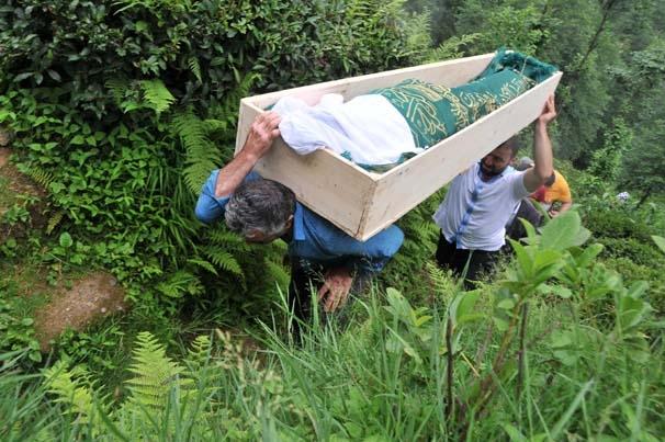 Dolu tabutu koymaya cesaret edemedik. İlkel teleferik hattı çok sağlam değil. Cenaze düşse rezil olacağız.
