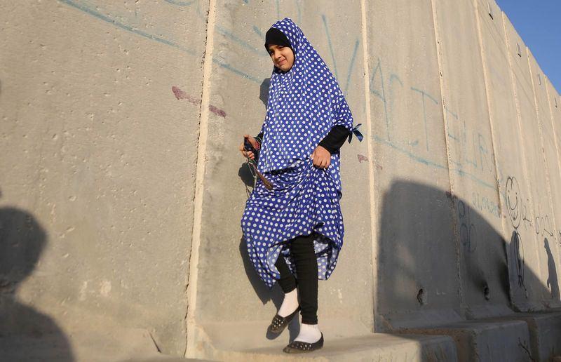 Çoğunluğu kadınlardan oluşan Filistinliler, sabahın erken saatlerinden itibaren Ramallah ile Kudüs'ü ayıran Kalendiye sınır noktasından geçti.