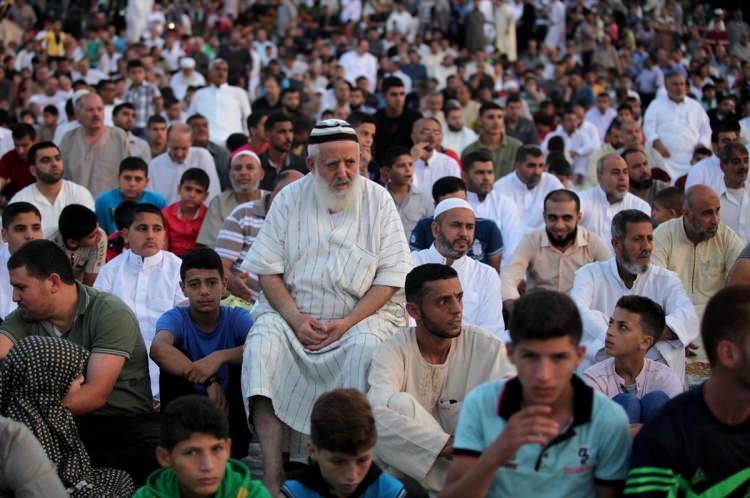 İsrail ablukası altındaki Gazze kentinde Müslümanlar, bayram namazı için Es-Saraya alanına akın etti. Müslümanlar, Hamas Siyasi Büro Başkan Yardımcısı İsmail Heniye'nin bayram hutbesini dinledi.