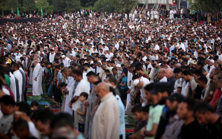 İsrail ablukası altındaki Gazze kentinde Müslümanlar, bayram namazını Es-Saraya alanında kıldı.