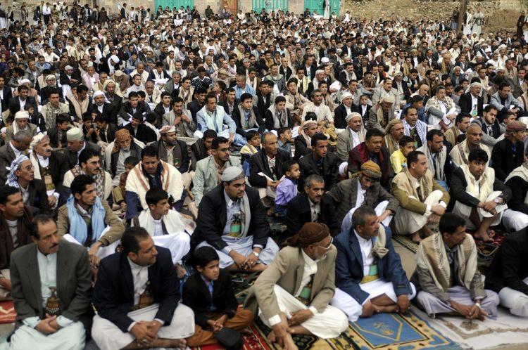 Yemenliler, başkent Sana'daki Al-Jeraf Meydanı'nda bayram namazını ihya etti.