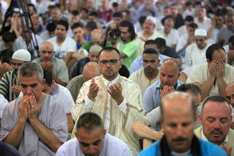 Başkent Tunus'un Bab Souika Bölgesi'nde Müslümanlar, bayram namazını Sidi Mahriz Camii'nde kıldı. Namaz sonrası dualar edildi.