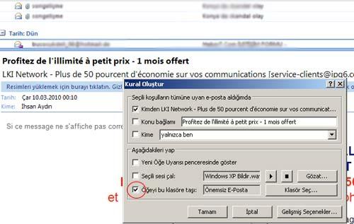 Ögeyi Bu Klasörü Taşı seçeneğini işaretleyin. Daha sonra bir klasör seçin ya da yeni bir klasör oluşturun.