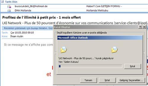 Tamam'a basarak çıktığnızda bundan sonra kural oluşturduğunuz mail adresinden gelen epostalardan kurtulmuş olursunuz. Geçmiş olsun...