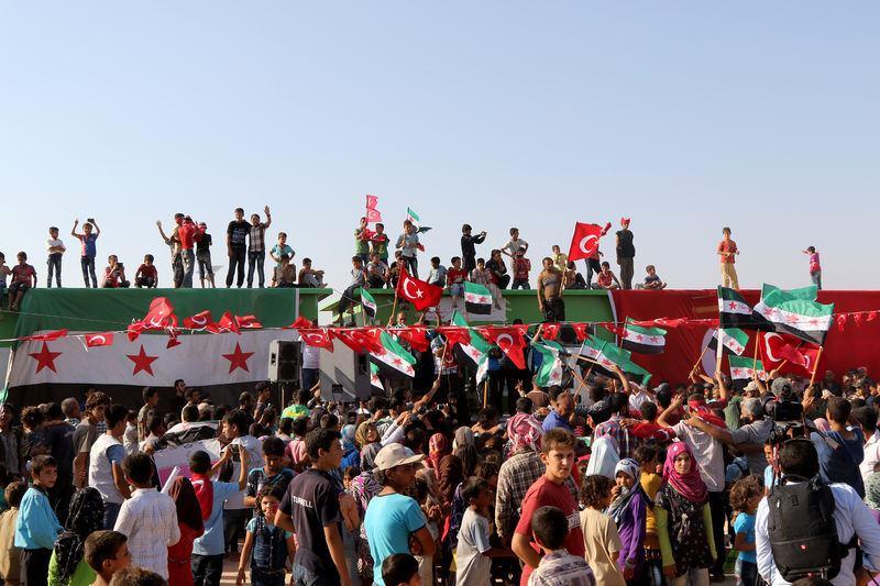 Suriye'nin Halep kentinin kuzeyindeki Azez ilçesinde yüzlerce kişi, Fetullahçı Terör Örgütü'nün (FETÖ) Türkiye'deki darbe girişimine karşı gösteri düzenledi.
