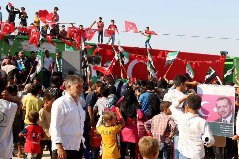Halep'in kuzeyinde Muhaliflerin kontrolündeki Azez'in Sico bölgesinde yüzlerce Suriyeli, Türk ve devrim bayraklarıyla kent meydanında bir araya gelerek FETÖ'nun darbe girişimini protesto etti.