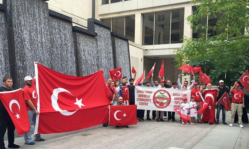 ABD'nin Boston kenti ve civarında yaşayan Türkler, Türkiye'nin Boston Başkonsolosluğu önünde Fetullahçı Terör Örgütü'nün (FETÖ) Türkiye'deki darbe girişimini kınamak için "Darbeye Hayır Demokrasiye Evet" mitingi düzenledi.