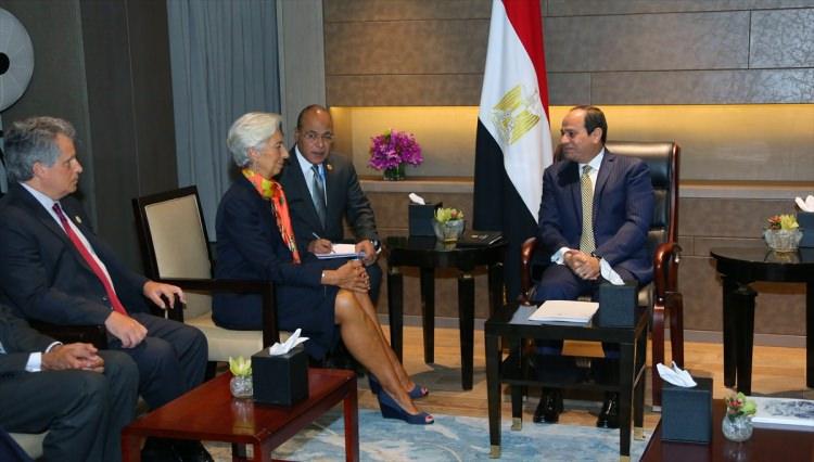 Mısır Cumhurbaşkanı Abdulfettah es-Sisi (sağda), G20 Liderler Zirvesi için geldiği Çin Halk Cumhuriyeti'ndeki Hangzhou kentinde Uluslararası Para Fonu (IMF) Başkanı Christine Lagarde (sol2) ile bir araya geldi.