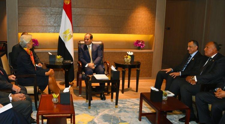 Mısır Cumhurbaşkanı Abdulfettah es-Sisi (sağda), G20 Liderler Zirvesi için geldiği Çin Halk Cumhuriyeti'ndeki Hangzhou kentinde Uluslararası Para Fonu (IMF) Başkanı Christine Lagarde (sol2) ile bir araya geldi.