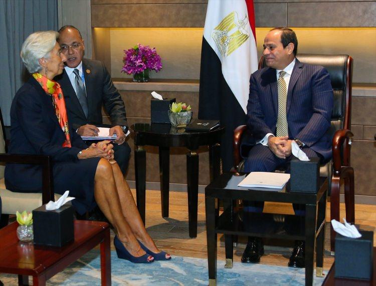 Mısır Cumhurbaşkanı Abdulfettah es-Sisi (sağda), G20 Liderler Zirvesi için geldiği Çin Halk Cumhuriyeti'ndeki Hangzhou kentinde Uluslararası Para Fonu (IMF) Başkanı Christine Lagarde (sol2) ile bir araya geldi.