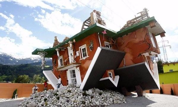 Avusturya'nın Terfens kentinde inşa edilen ters eve turistler yoğun ilgi gösteriyor...