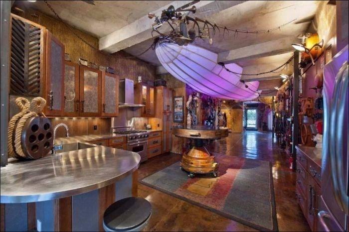 New York'un Chelsea semtinde yer alan steampunk tarzında daire, tavanındaki garip uçan gemilerle olağandışı bir düzenlemeye sahip.