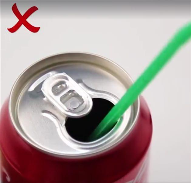 Kutu içeceklere pipeti takarken bu şekilde yaptığınızda pipet istediğiniz şekilde durmayacak ve sinirlerinizi bozacaktır.
