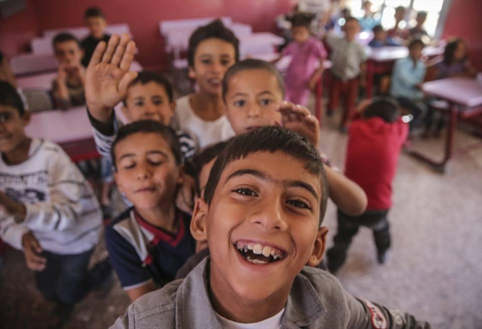 Sivil kıyafetlerle okula gelen öğrencilere beyaz tişört ve gri pantolonlar giydirildi, ayakkabıları yenilendi. Kırtasiye yardımında da bulunulan öğrenciler, çalınan zille sınıflarına koştu.