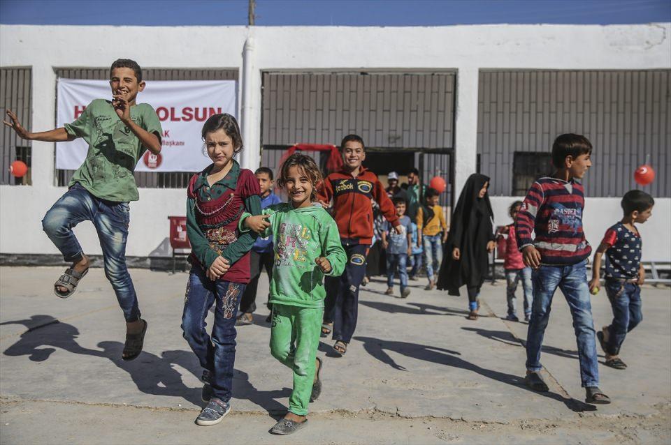 Öğretmenleriyle tanışan öğrenciler, teneffüs aralarında kendilerine verilen toplarla futbol ve basketbol oynadı.
