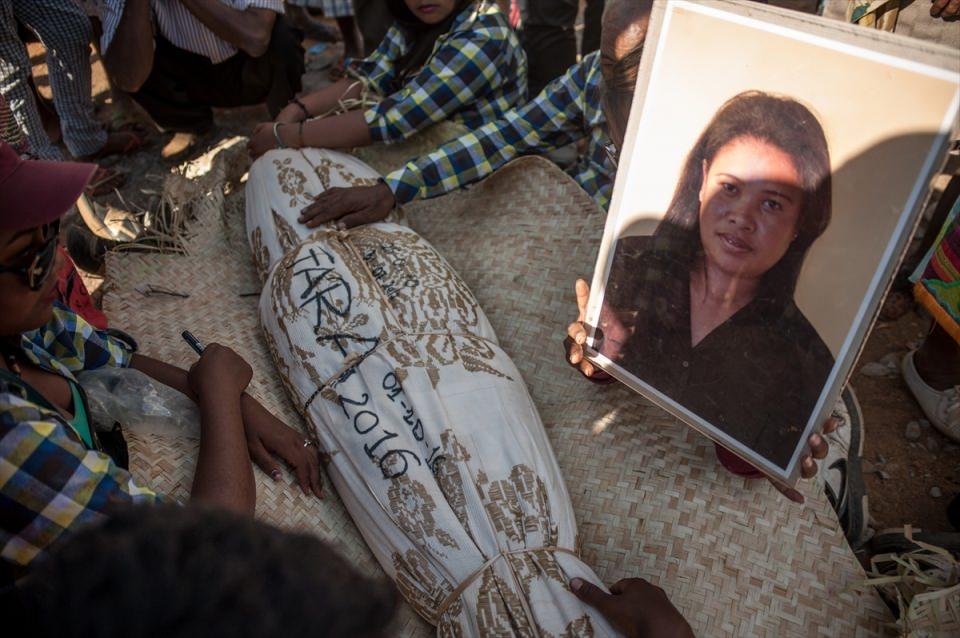 Mezardan çıkartılan ölüler, eski kefenlerinden çıkarılıp yeni kefenlere sarılıyor.