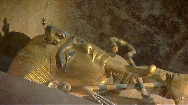 Bir lahtin içindeki som altından tabut mum ışığında bile parlıyordu.