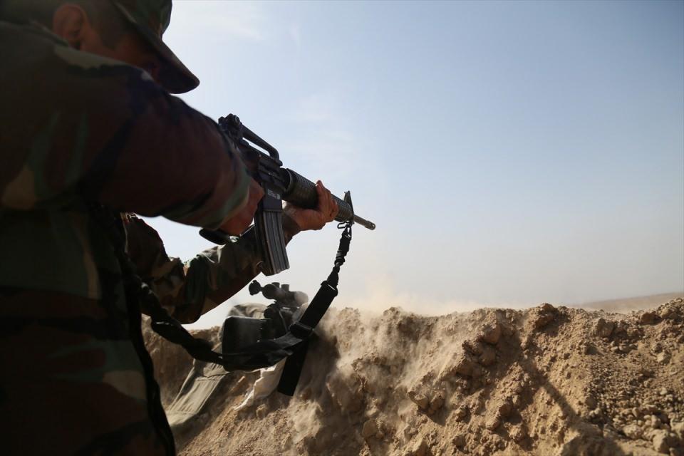 Peşmergenin Bertella nahiyesi yakınlarında konuşlandığı cephede, terör örgütü mensuplarının zaman zaman açtığı ateşe karşılık veriliyor.