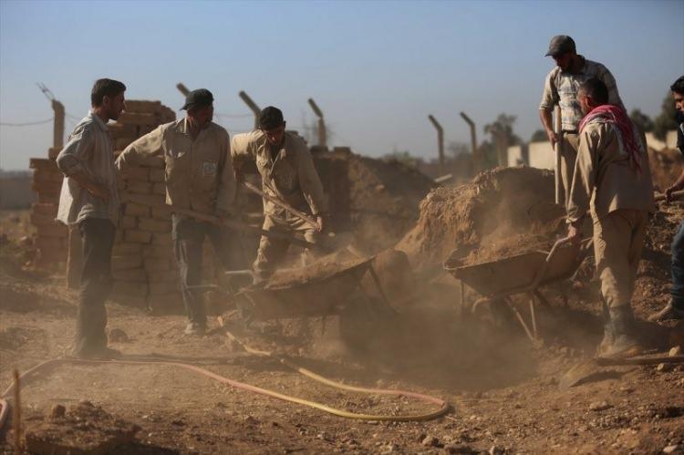 Çalışanlar, mezar katlarını ve duvarlarını kendi hazırladıkları kerpiçlerle oluşturuyor.