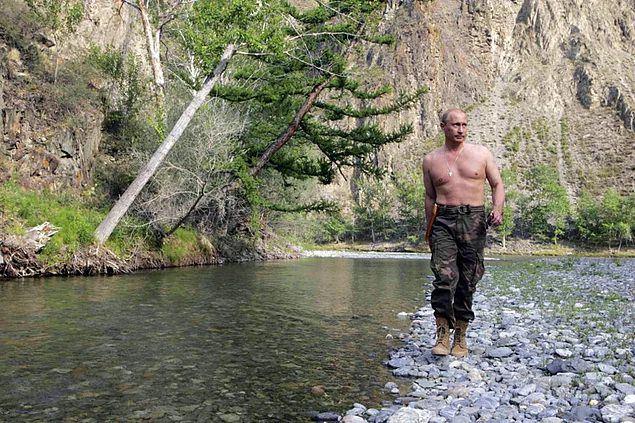 Vladimir Putin'in Sibirya'da üstsüz verdiği ve avlanırken çekilen fotoğraflar da 'biz daha bitmedik !' mesajını vermek üzerineydi. (2009)