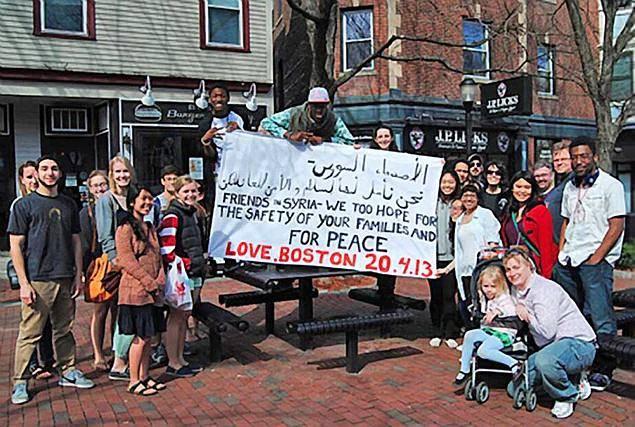Yukarıdaki mesaja cevap olarak Boston'dan gönderilen barış pankartı (2013)