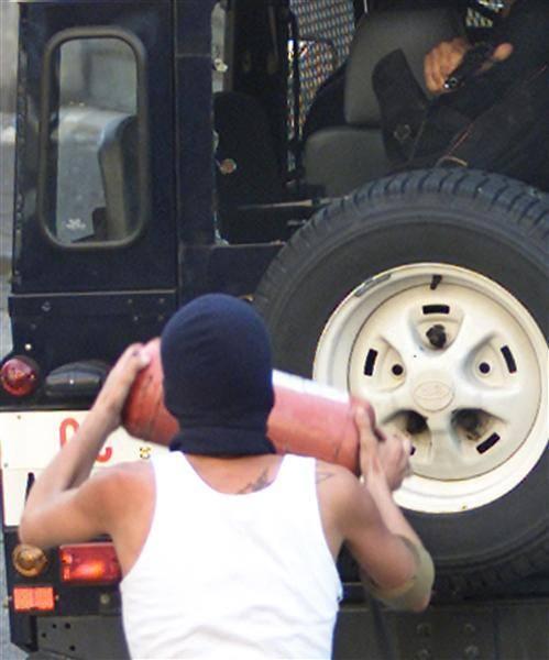 İtalya'da polise direnen bir protestocu