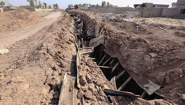DAEŞ'in kazdığı ucu bucağı görünmeyen tünel fotoğraflandı. Şehirden kaçmayı başaranların kamplara sığındığı çatışma bölgesinde, ABD askerlerinin kampı da görüntülendi.