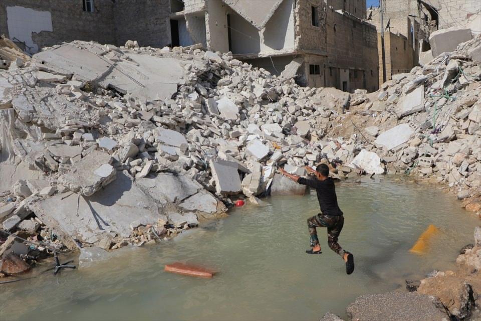 Halep'in Karm Hamud semtinde 5-7 metre derinliğinde çukur açabilen tahribat gücü yüksek nüfuz edici bombaların düştüğü noktalarda büyük çukurlar oluştu ve su boruları patladı.