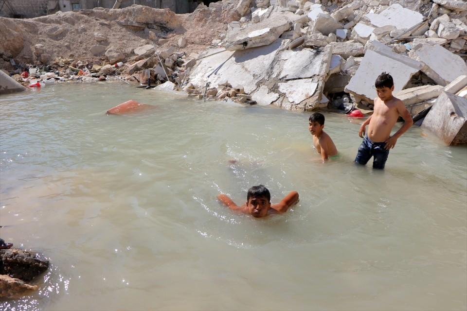 Su şebekelerinin hasar görmesi nedeniyle susuz kalan semt sakinleri, patlayan borulardan bu çukurlara akan suları evlerine taşımak zorunda kalıyor.