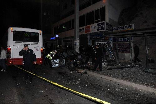 İzmir'in Çiğli ilçesindeki trafik kazasında 2 kişi hayatını kaybetti, 3'ü ağır 6 kişi yaralandı. Kazada sürücü Anıl Erol ve araçta bulunan Engin İşler (37) yaralanırken, durakta oğluyla birlikte otobüs bekleyen baba Yavuz Turanlı olay yerinde hayatını kaybetti. Oğul Murat Turanlı (31) ise yapılan tüm müdahalelere rağmen kurtarılamadı. Erol ve İşler'in yanı sıra, durakta bekleyen yolculardan Yener Ediz (22), Mehmet Güleryüz (32) ve Eyüp Gençdal (32) Karşıyaka Devlet Hastanesi'ne, Seyhun Can (37) ise Ege Üniversitesi Hastanesi'ne kaldırıldı. (CİHAN/Tekin Gürbulak)