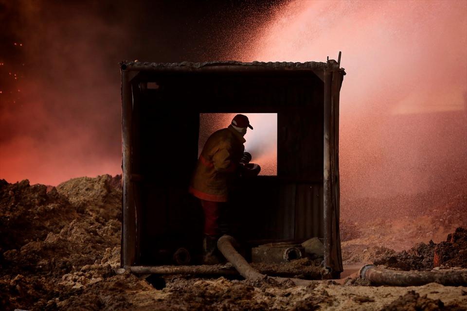 DEAŞ militanlarının bölgeyi terk ettikleri esnada patlayıcılarla imha ettikleri petrol kuyuları, itfaiye ekiplerinin gerçekleştirdiği yangın söndürme çalışmaları ile kontrol altına alınmaya çalışılıyor.