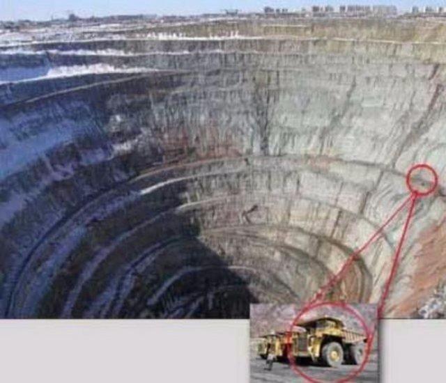 Devasa kamyon Mirny'de çalışırken ancak bu büyüklükte görüntülenebiliyor...