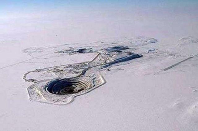 Diavik Madeni'ni çevreleyen sular donduğu zaman madenin görüntüsü çok daha etkileyici hale geliyor. Aşırı yağışlar kimi zaman böyle durumlara yol açabiliyor.