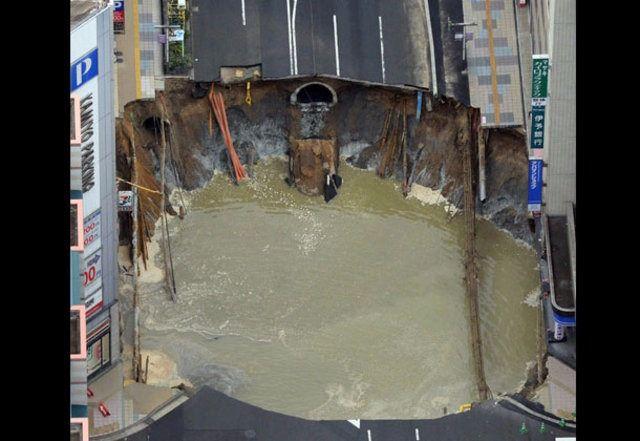 Hakata İstasyonu yakınında meydana gelen çöküntünün ardından gaz patlamalarından endişe eden yetkililer vatandaşları gaz kullanmamaları konusunda uyardı.